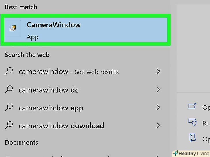 Відкрийте CameraWindow. введітьcamerawindow у рядку пошуку меню «Пуск», потім клацнітьCameraWindow у верхній частині списку результатів пошуку.