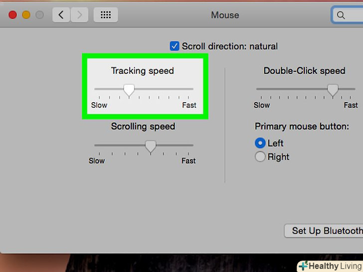 Дізнайтеся чутливість миші під заголовком "швидкість переміщення".перемістіть повзунок вправо, щоб курсор переміщався швидше, або вліво, щоб уповільнити його.