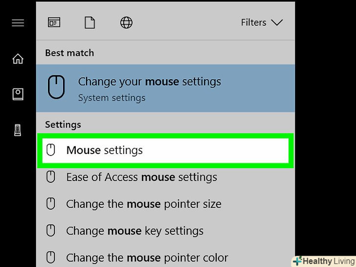 Натисніть наПараметри миші. це опція із зображенням шестерінки в лівій частині вікна.
