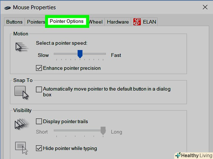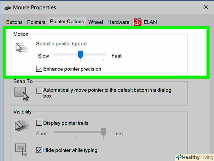 Дізнайтеся чутливість миші під заголовком "переміщення".крім чутливості курсора, тут також є опція»включити підвищену точність установки покажчика". Якщо поруч з цією опцією стоїть галочка, система буде розпізнавати моменти, коли вам знадобляться більш точні рухи мишею (наприклад, якщо ви почнете дуже повільно рухати курсором), і автоматично підвищить чутливість.[1]