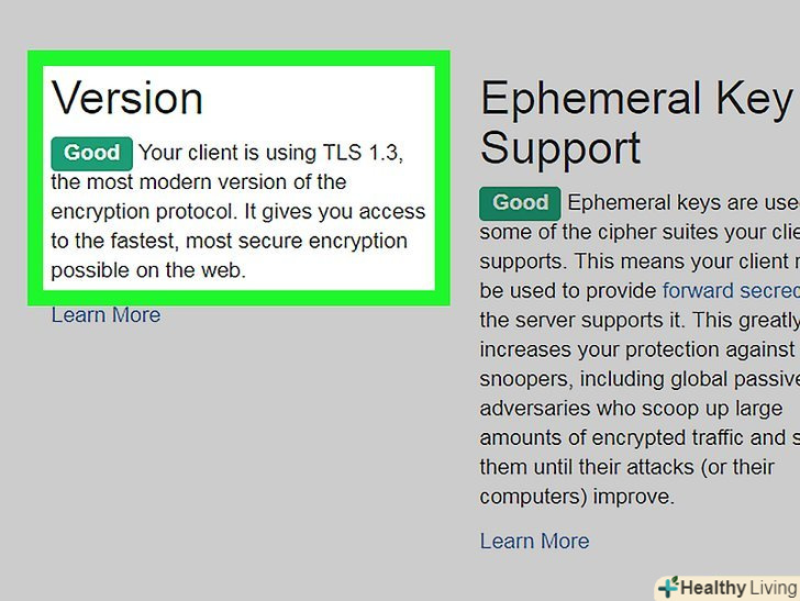 Відкрийте сайтHttps://www.howsmyssl.com. цей онлайн-сервіс протестує браузер і відобразить результати перевірки.[2]