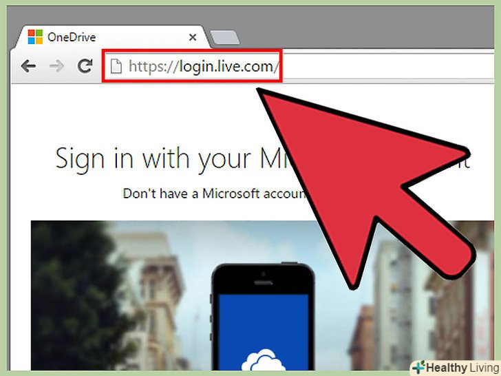 Перейдіть на веб-сайт OneDrive. якщо ви далеко від дому і Вам потрібно отримати доступ до файлів на вашому ПК, просто знайдіть будь-який ПК в тому місці, де ви знаходитесь. Відкрийте веб браузер і перейдіть на сторінку OneDrive.- Це зможе зробити будь-який комп'ютер, немає потреби встановлювати додаток OneDrive на нього.