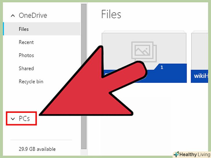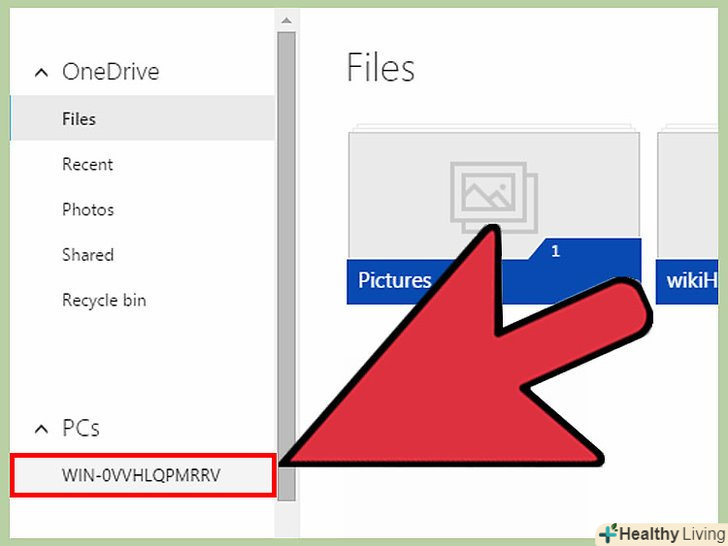 Встановіть зв'язок.як тільки OneDrive аутентифікує код, у вас з'явиться можливість прямого віддаленого доступу до папок і файлів вашого ПК. Папки вашого комп'ютера з'являться в різних категоріях, так само, як вони структуровані на вашому ПК.- Папки з'являться у вигляді синіх квадратів.