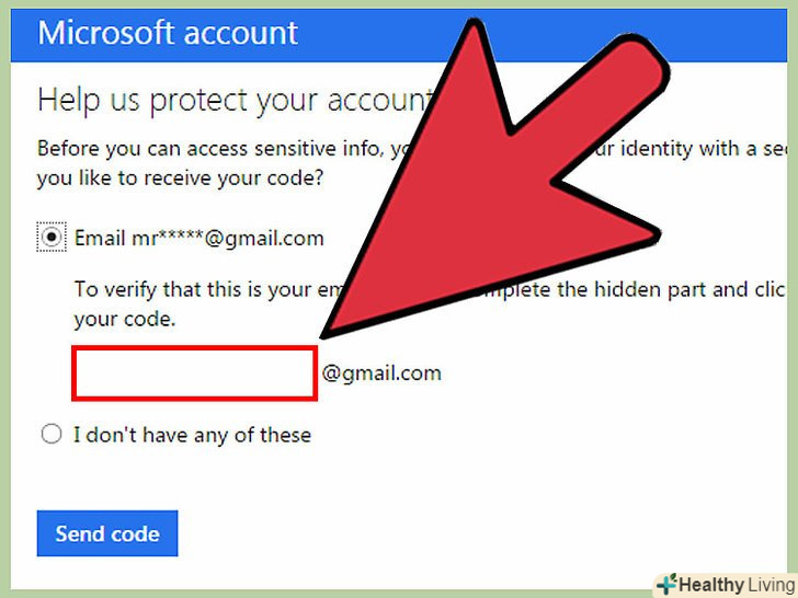 Введіть Вашу адресу електронної пошти. в процесі верифікації, вам потрібно буде ввести вашу адресу електронної пошти, прив'язаний до облікового запису OneDrive. Введіть адресу електронної пошти у відповідне поле і натисніть на синю кнопку "Далі". OneDriveпришлет вам код безпеки на цю адресу.- Ця електронна адреса повинна збігатися з адресою в OneDrive.