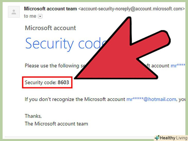 Знайдіть код.перейдіть до клієнта вашої електронної пошти, увійдіть, і відкрийте "Вхідні". Знайдіть лист з темою "Код безпеки облікового запису Microsoft". Відкрийте цей лист і скопіюйте код безпеки.