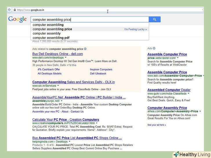 Подумайте про плюси і мінуси збірки і покупки готового комп'ютера.збірка-традиційний спосіб придбання комп'ютера. Настільні комп'ютери є модульними пристроями і можуть бути легко зібрані і модернізовані. Збірка може обійтися значно дешевше, ніж покупка готового комп'ютера.- Оцініть готові комп'ютери.порівняйте характеристики готових комп'ютерів, щоб уникнути зайвої продуктивності (зайвих можливостей, які ви не будете використовувати). З іншого боку, не купуйте комп'ютер тільки тому, що він дешево коштує; переконайтеся, що його продуктивність відповідає вашим вимогам.