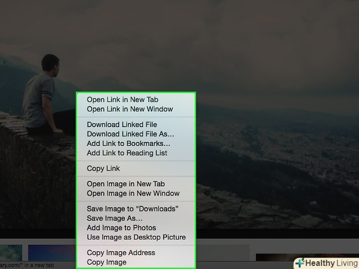 Відкрийте контекстне меню. Утримуючи клавішу Control, клацніть по зображенню, а потім відпустіть клавішу Control. Над або біля картинки відкриється спливаюче меню.- Не відпускайтеControl, коли будете клацати по зображенню — в іншому разі контекстне меню не відкриється.