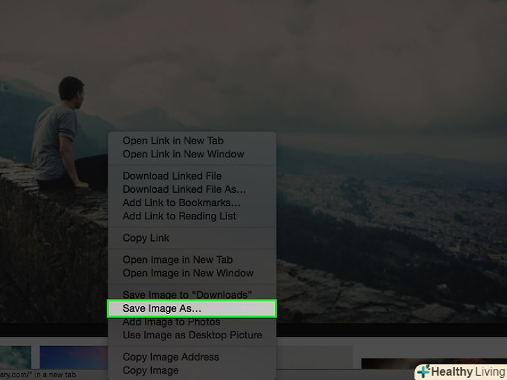 НатиснітьЗберегти зображення в "Завантаження".ви знайдете цю опцію в контекстному меню. Зображення буде завантажено в папку для завантажень, яка, як правило, називається "Завантаження".- Якщо Ви користуєтеся браузером, відмінним від Safari, натисніть "Зберегти зображення як". В цьому випадку можна вести ім'я файлу і вказати папку для завантаження.