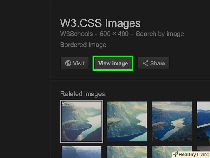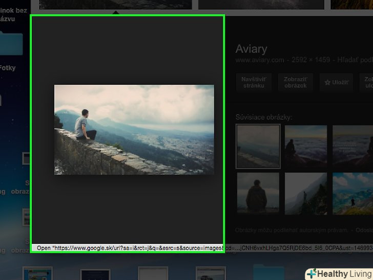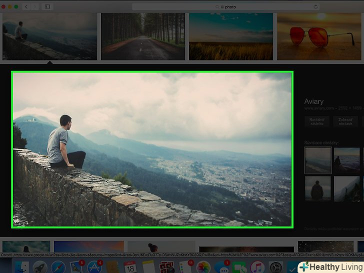 Відкрийте зображення (якщо необхідно).якщо зображення представлено у форматі попереднього перегляду (наприклад, як на вкладці «Картинки» сайту Yandex або Google), клацніть по зображенню, щоб відкрити його.- Деякі зображення (наприклад, у статтях) являють собою посилання на інші сторінки. Якщо ви клацнули по зображенню і перейшли на іншу сторінку, в браузері натисніть кнопку «Назад», щоб повернутися до вихідного зображення.