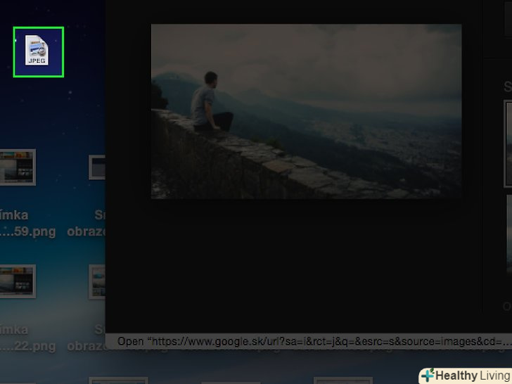 Відпустіть кнопку миші. коли ви побачите, що над мініатюрою зображення з'явився символ » + " в зеленому колі, відпустіть кнопку миші. Зображення буде скопійовано на робочий стіл.