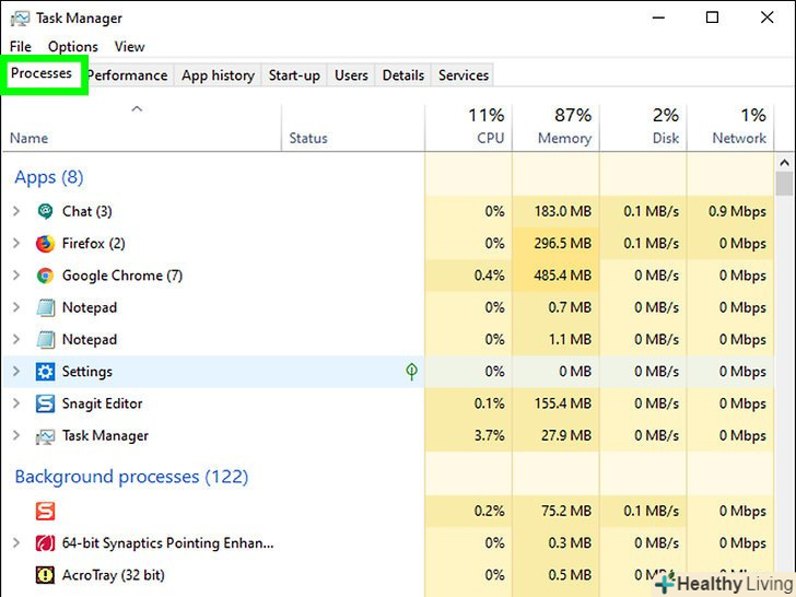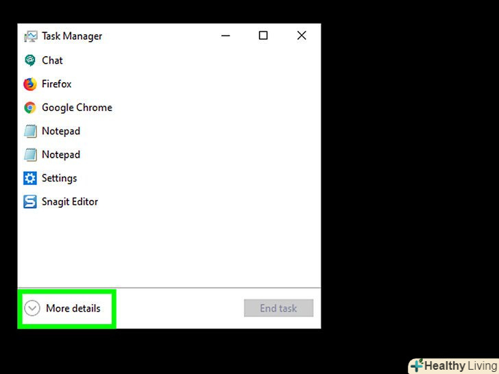 НатиснітьДодатково. ця опція знаходиться в нижньому лівому кутку диспетчера завдань. Відобразиться список всіх процесів, які запущені на комп'ютері-програм, які ви запустили, і процесів, які працюють у фоновому режимі.
