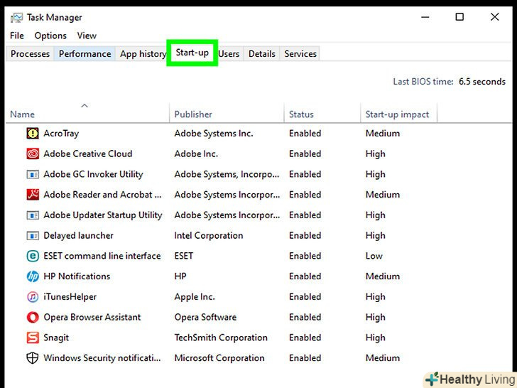 Перейдіть на вкладкуАвтозавантаження.ви знайдете її вгорі диспетчера завдань. Відкриється список програм, які запускаються при завантаженні операційної системи комп'ютера.