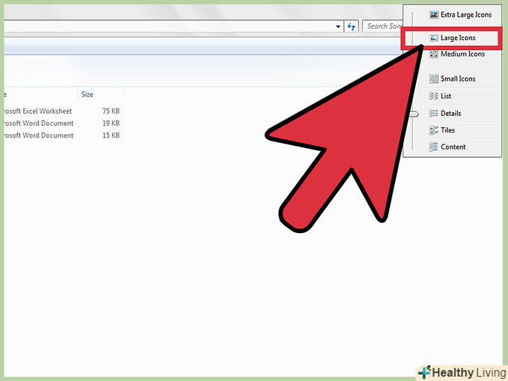 Виберіть в опції "перегляд «(View) варіант» Список" (List) і не збільшуйте активне вікно, поки не відобразяться всі файли.- Ви маєте право повторити описані кроки, якщо не в змозі зробити вікно досить великим для потрапляння на екран всіх файлів.