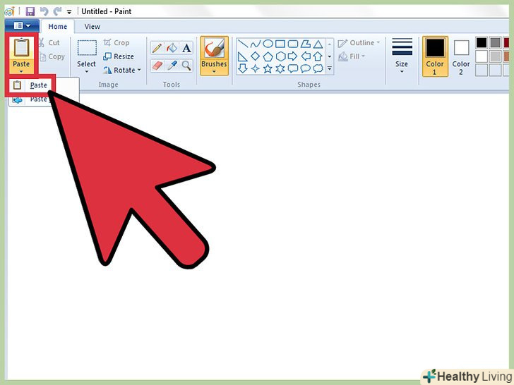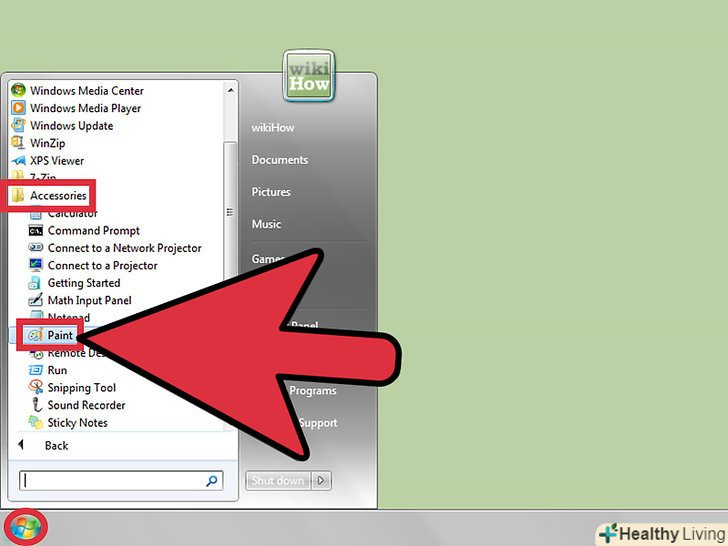Запустіть програму "Paint«, розташовану в розділі» стандартні «(Accessories) списку» програми «(Program) в меню» Пуск" (Start).