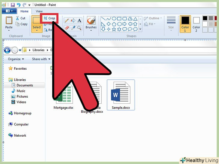 Обріжте зображення екрану за допомогою утиліти «обрізка» (Crop) в рамках розділу «малюнок» (Image), що знаходиться на панелі інструментів.