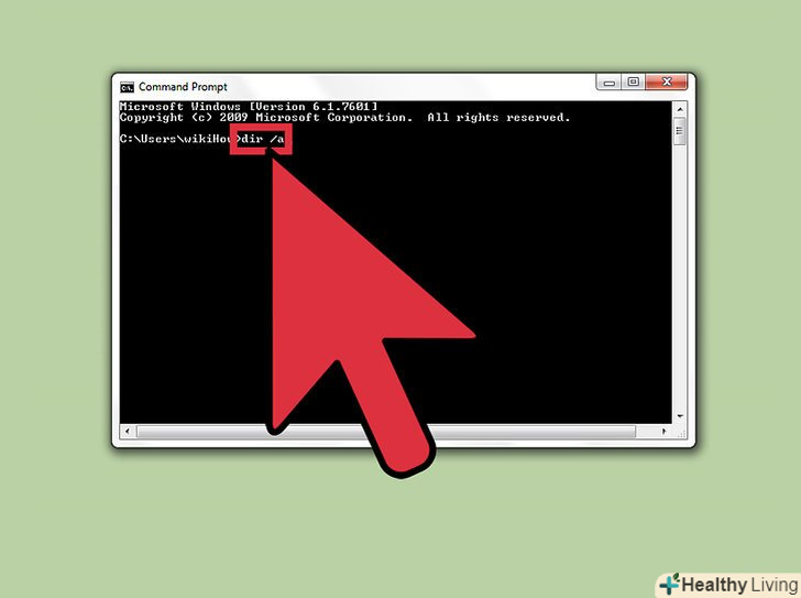 Надрукуйте в командному рядку " dir / a» з подальшим зазначенням повного шляху до потрібної папки, список файлів з якої Ви бажаєте роздрукувати в DOS.- Наприклад, якщо ви хочете повний список файлів зі своєї папки " Документи "(Documents), то потрібно ввести "dir / a" з наступним «C:\Users\YourUserName\Документы\», зберігаючи лапки тільки для цієї частини команди.
