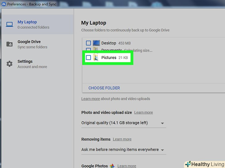 - Можна вибрати папку з зображеннями (наприклад, папку "зображення"), але майте на увазі, що всі фотографії, які зберігаються в цій папці, будуть скопійовані в Google Фото.