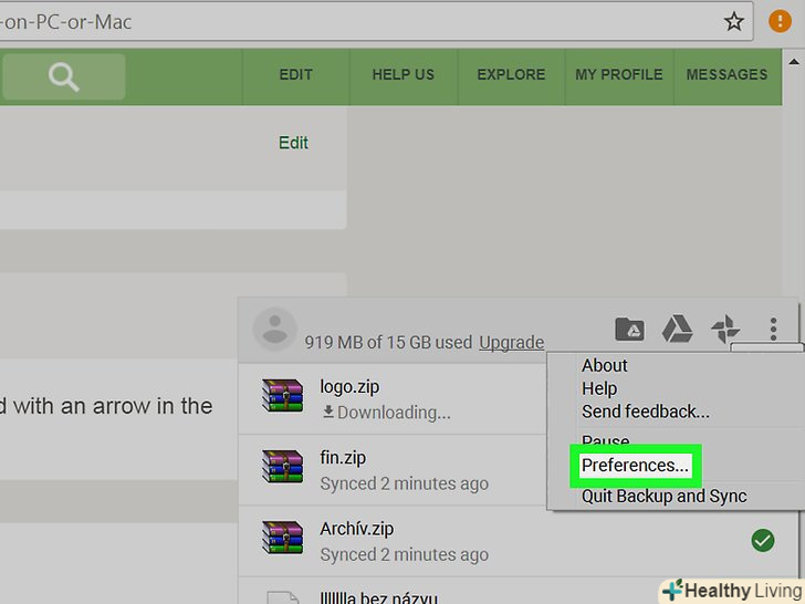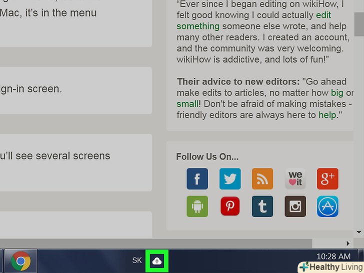 Клацніть правою кнопкою миші по значку програми " Автозавантаження і синхронізація». у Windows шукайте цей значок на панелі додатків праворуч на панелі завдань. У macOS значок розташований в рядку меню вгорі екрану. Значок виглядає як хмара зі стрілкою.[1]