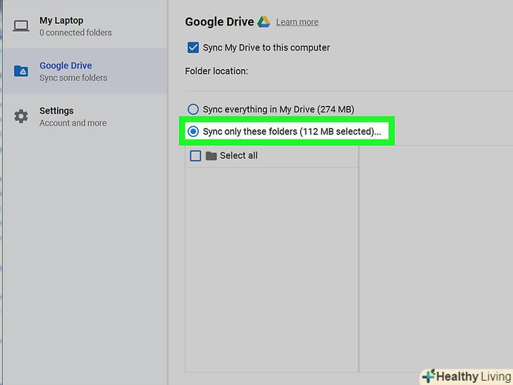 НатиснітьСинхронізувати тільки ці папки.відкриється список папок.