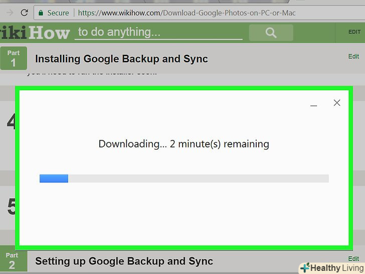 Клацніть поПочати. додаток "Автозавантаження і синхронізація" приступить до завантаження файлів з обраних папок в ваш Google Диск. На це піде деякий час, який залежить від розміру всіх фотографій. Витратьте цей час на, наприклад, скачування фотографій.- Зазначене додаток буде постійно працювати на комп'ютері, тобто файли будуть регулярно копіюватися в ваш Google Диск.