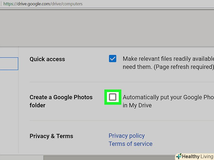 Встановіть прапорець біля "створити папку Google Фото".у Google Диску з'явиться посилання на ваші фотографії.
