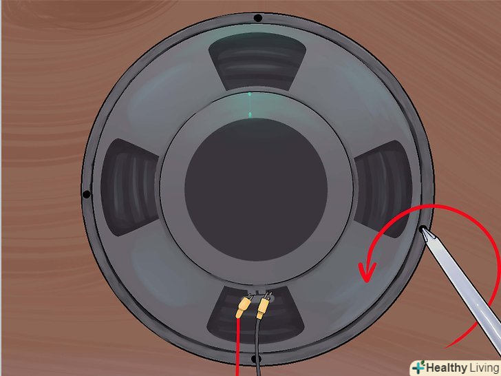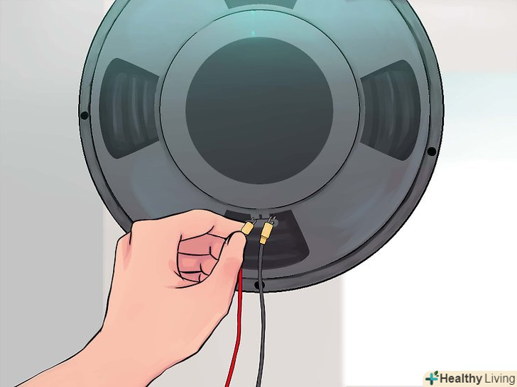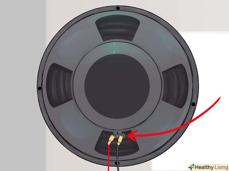 Знайдіть на динаміці або задній панелі колонки дроти і термінали.- Під динаміком йдуть 2 дроти. Вони підключені до терміналу.