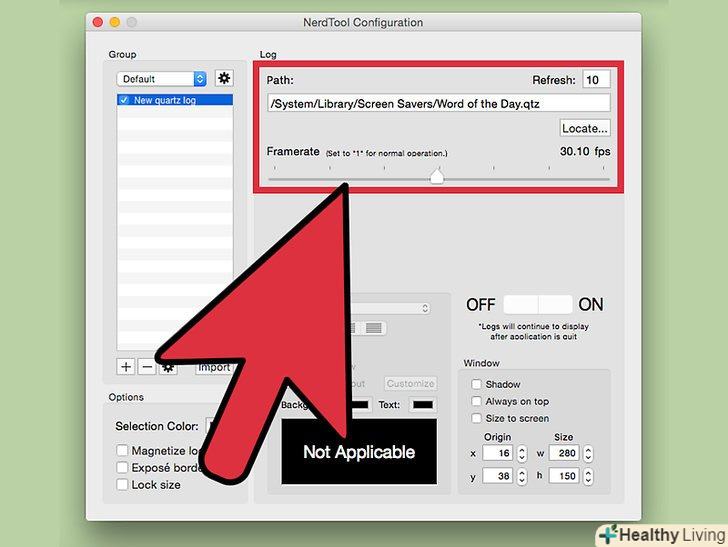 Встановіть анімовані шпалери на робочому столі. в системі Mac OS є файли анімації, які можна використовувати в якості анімованих шпалер для робочого столу, наприклад, анімовані екранні заставки (Quartz-анімація).[10]- Запустіть програму Nerdtool, клацнувши по їїЗначку.