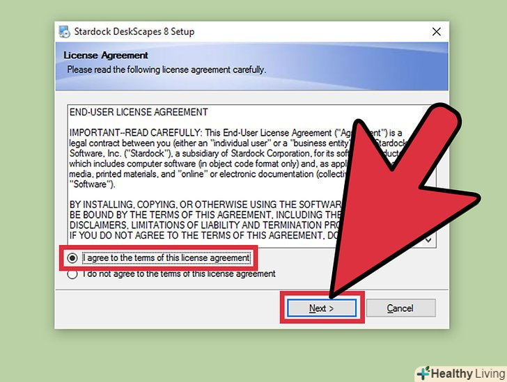 Запустіть процес установки.відкрийте папку зі завантаженим інсталяційним файлом і двічі клацніть по файлу DeskScapes8_cnet-setup.exe.[6]- У Windows 10 встановіть програму в режимі сумісності: клацніть правою кнопкою миші по установчому файлу, в меню виберіть режим сумісності і в випадаючому меню натисніть "Windows 8".[7]