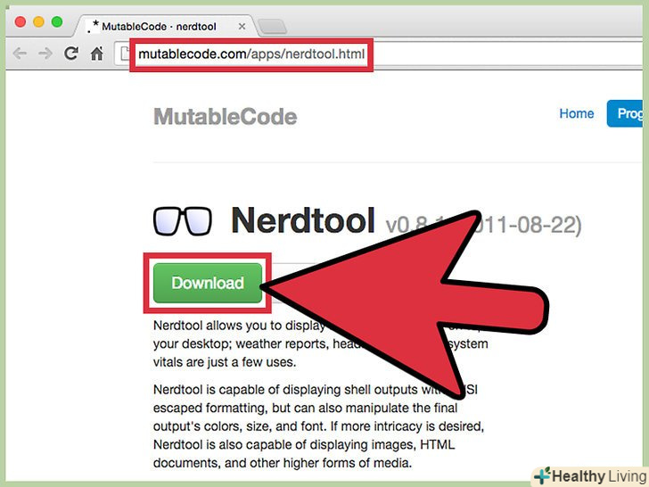 Скачайте додаток. Nerdtool-це стороння програма, яка дозволяє відображати на робочому столі не тільки анімовані шпалери, але й інші елементи.- Відкрийте сайт MutableCode і скачайте Nerdtool.[9]