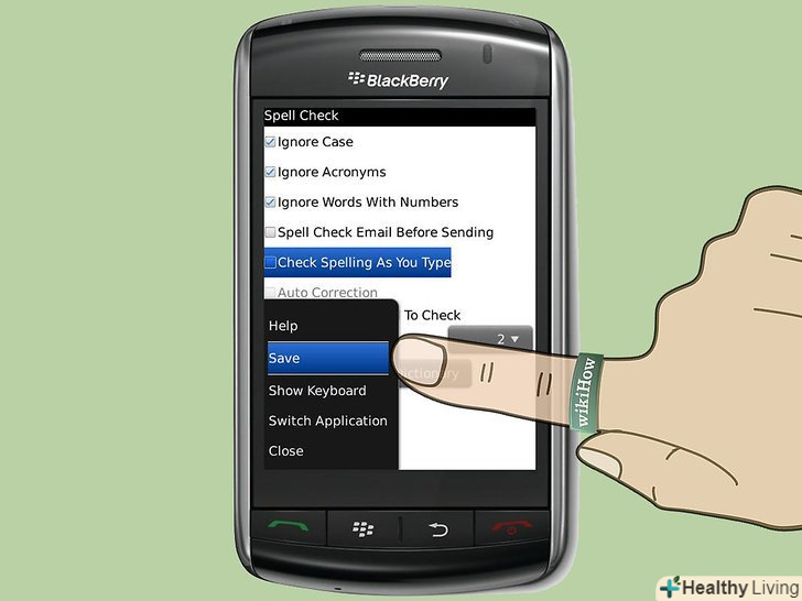 Натисніть на кнопку " Menu "і виберіть" Save. " Автокорекція буде відключена на вашому пристрої Blackberry. [2]