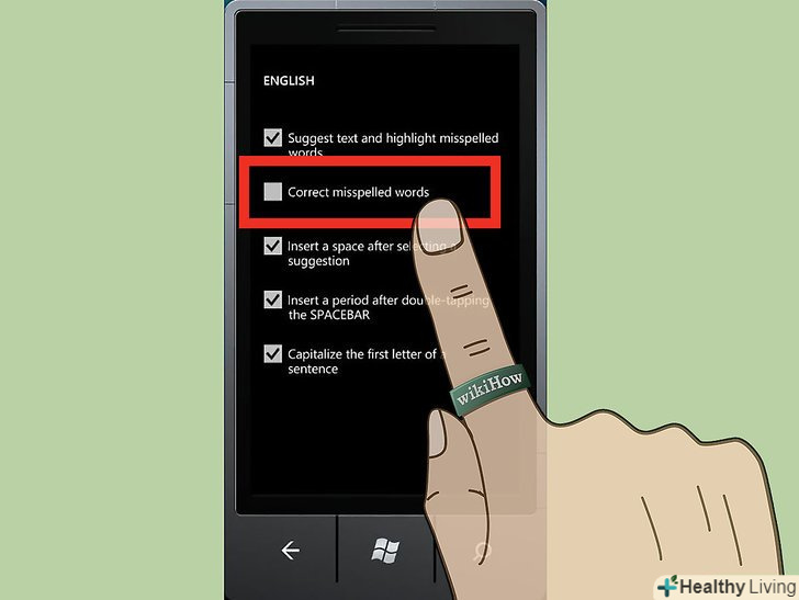 Приберіть галочку поруч з " виправлення слів з помилками." Автокорекція буде відключена на вашому телефоні Windows. [3]
