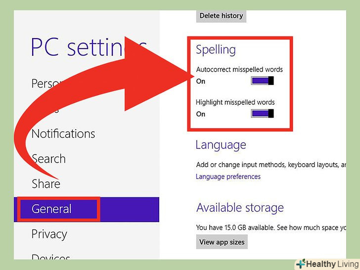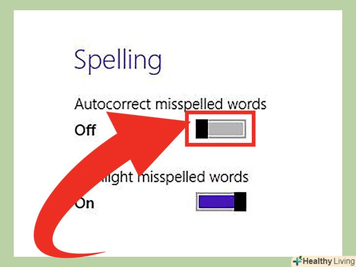 Приберіть галочку поруч з " Автокорекція слів з помилками." Автокорекція буде відключена для всіх додатків на Windows 8, включаючи Microsoft Office. [4]