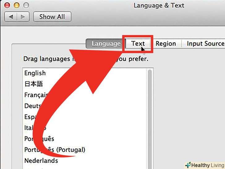 Натисніть на вкладку під назвою "Text" зверху віконця System Preferences.