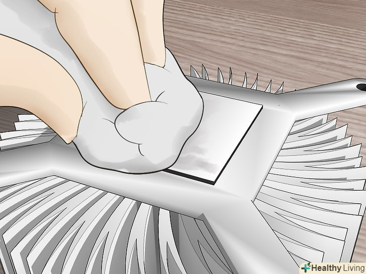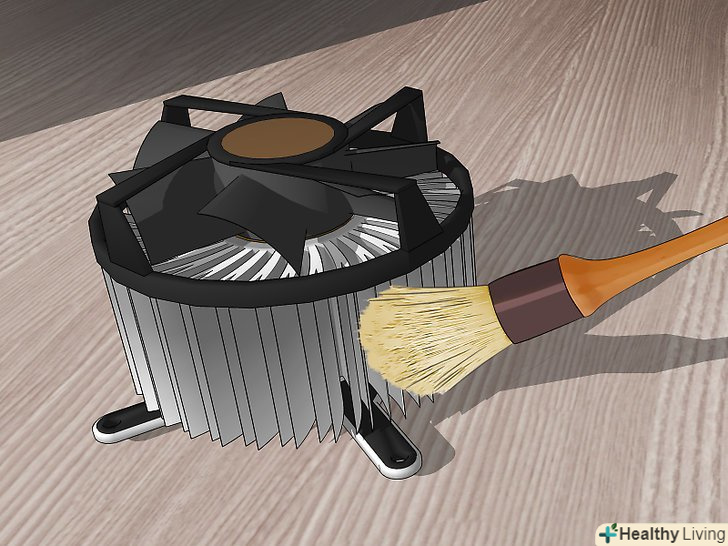 Протріть ребра радіатора від пилу.після того як ви благополучно витягнете радіатор, видаліть пил з його ребер. Використовуйте маленьку щітку і / або балончик зі стисненим повітрям. Обов'язково робіть це далеко від інших частин комп'ютера, щоб пил не потрапила туди, де їй не місце.[10]