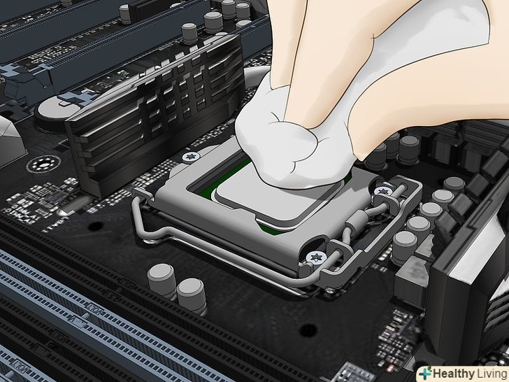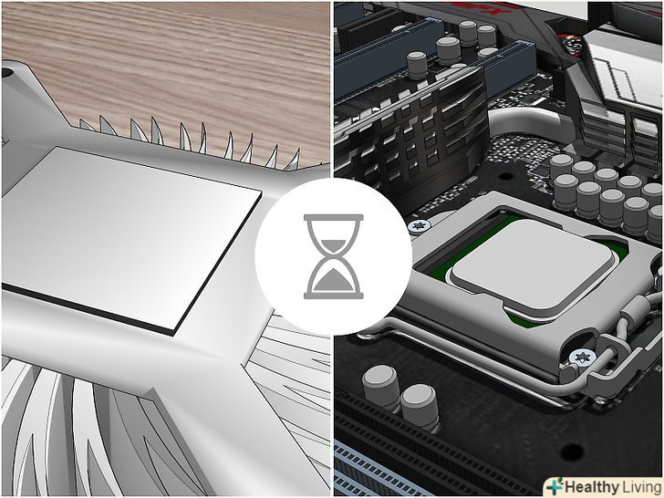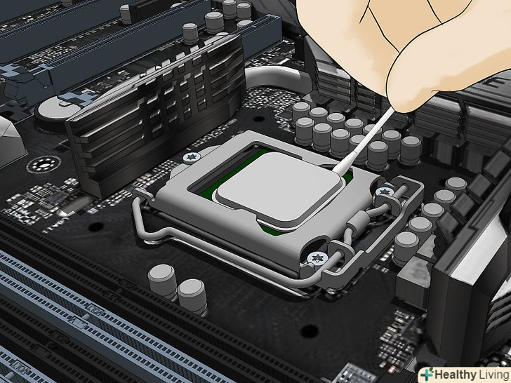 Зачекайте, поки радіатор і процесор висохнуть.врахуйте, що після того, як ви видалите всі сліди Старої пасти, радіатор і процесор необхідно повторно протерти спиртом або очищувачем. Не наносьте нову пасту відразу. Зачекайте, поки вони повністю не висохнуть на повітрі.[19]