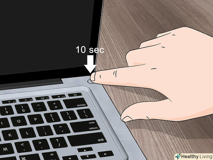 Затисніть кнопку живлення.варто розуміти, що навіть після того, як ви вимкніть комп'ютер і витягніть батарею, в ньому ще залишиться частина заряду. Натисніть кнопку живлення і утримуйте її не менше десяти секунд. Це дозволить вивільнити залишковий заряд, який ще може перебувати в комп'ютері.[5]