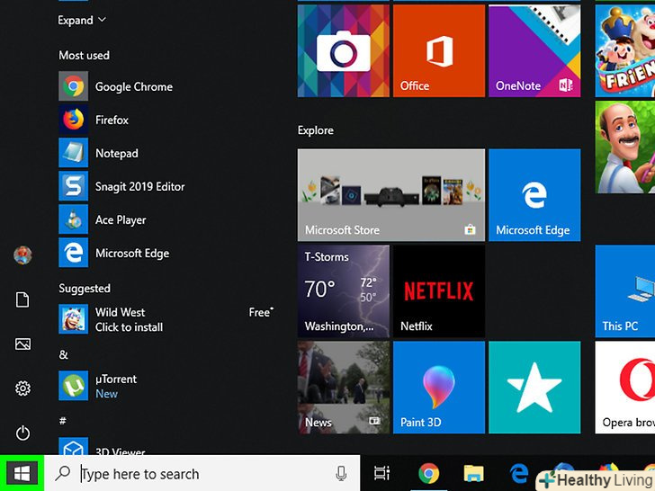 Відкрийте меню «Пуск».натисніть на логотип Windows у нижньому лівому куті екрана.