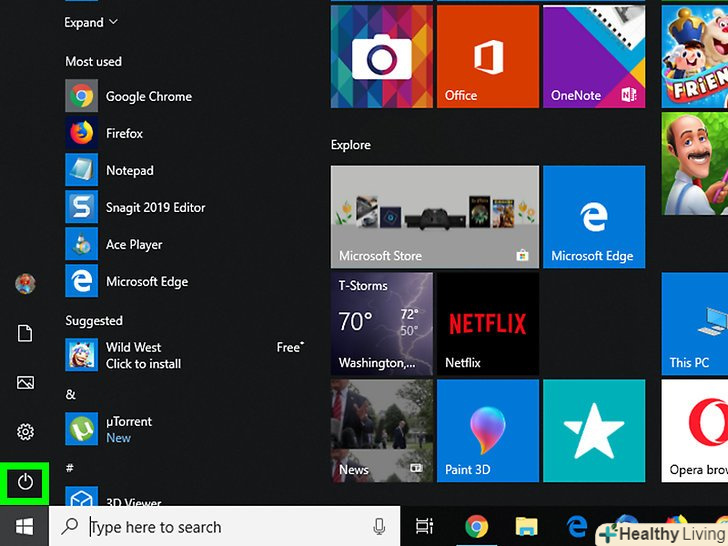 Натисніть» живлення".ця опція знаходиться в нижній лівій частині меню "Пуск".