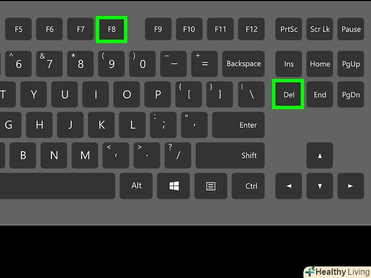 Натисніть на клавішу для входу BIOS. Вона залежить від моделі материнської плати, але, як правило, це одна з F-клавіш (наприклад, F2), клавіша Delete або клавіша ESC. Натисніть на цю клавішу до того, як відобразиться екран входу в систему.- Потрібна клавіша відобразиться під логотипом виробника комп'ютера або материнської плати і буде позначена текстом " Press [key] to enter setup» (натисніть [клавішу], щоб увійти в BIOS) або аналогічним.