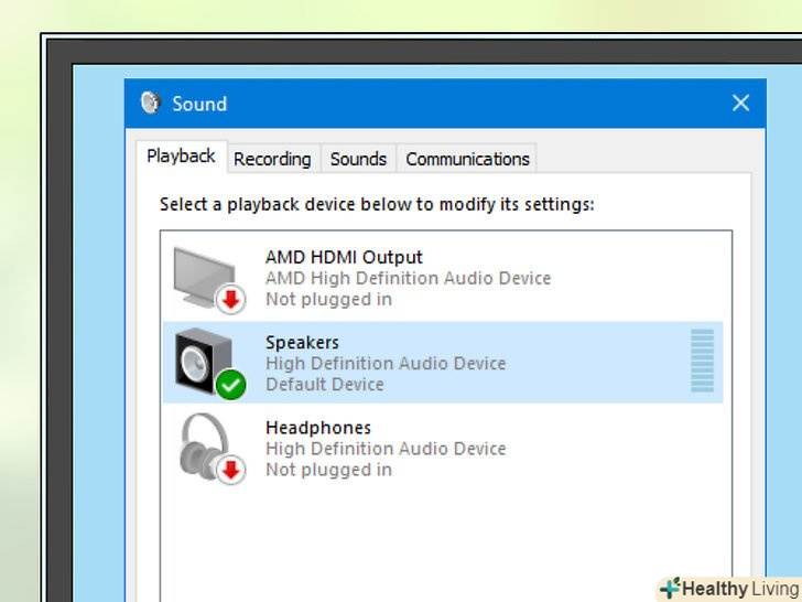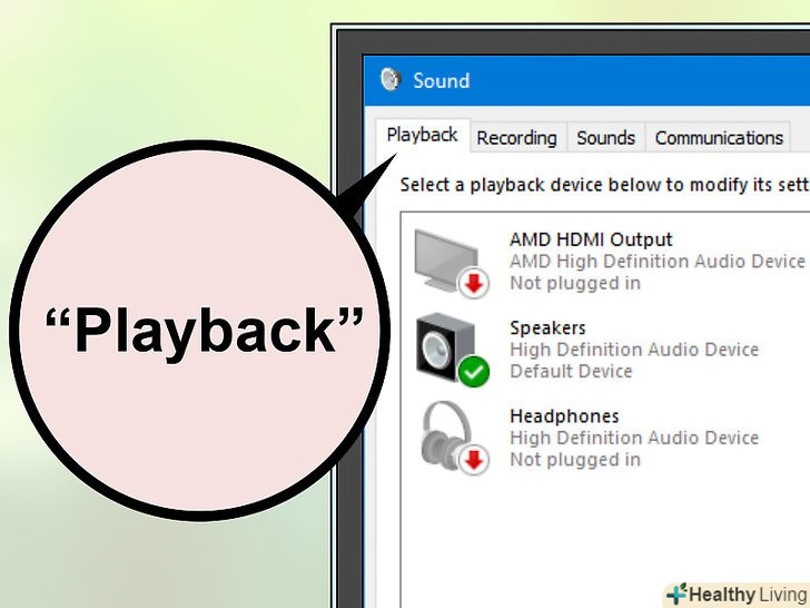 Клацніть по вкладціВідтворення.вона знаходиться у верхній частині вікна "Звук". Відкриються налаштування звуку.