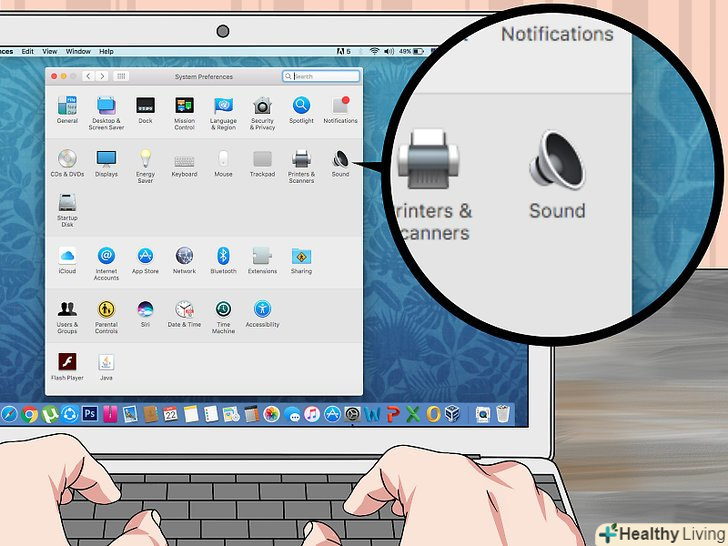 НатиснітьЗвук. цей значок у вигляді динаміка знаходиться у вікні "Системні налаштування". Відкриється вікно "Звук".