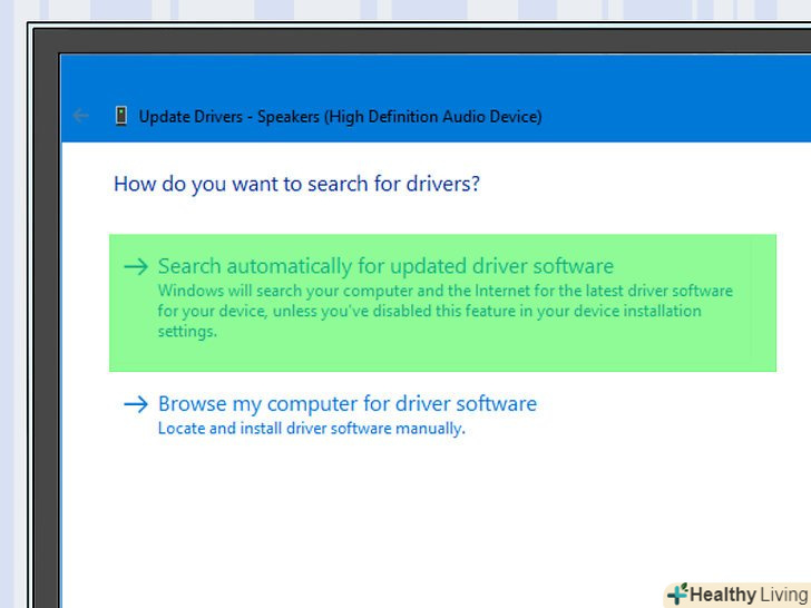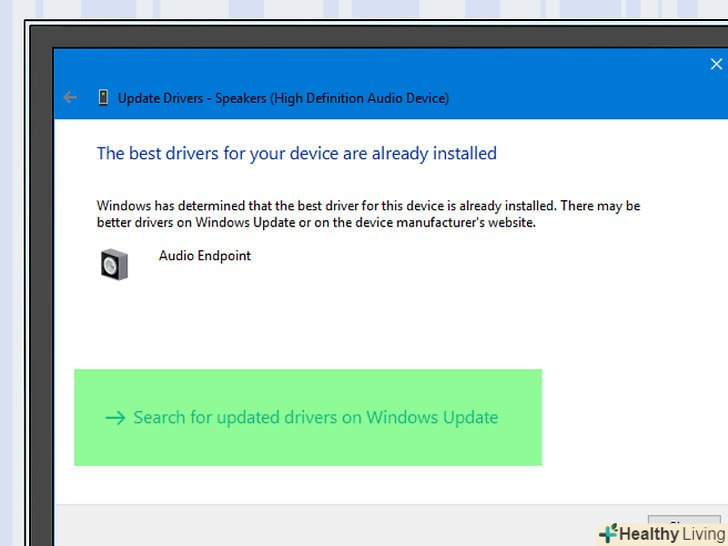 Дотримуйтесь інструкцій на екрані.у більшості випадків драйвери встановляться автоматично, а на екрані з'явиться підтвердження. У деяких випадках потрібно клацнути по меню або перезавантажити комп'ютер, коли з'явиться відповідний запит.- Якщо нових аудіо драйверів немає, з'явиться повідомлення «останні драйвери вже встановлені», але можна відкрити Центр оновлення Windows і натиснути «знайти оновлені драйвери».