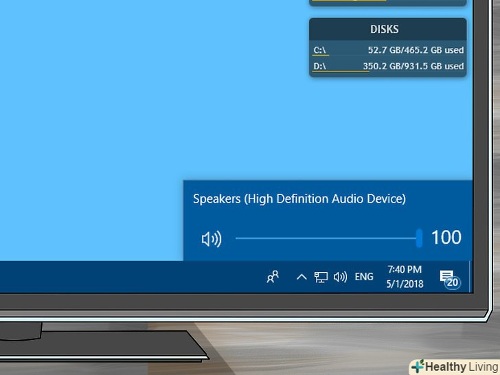 Перевірте рівень гучності колонок або комп'ютера.якщо на колонках є свій регулятор гучності, з його допомогою збільште гучність, щоб чути звук. Також переконайтеся, що звук не відключений на комп'ютері, тому що це досить поширене явище.- На ноутбуці збільште рівень звуку до максимального значення.