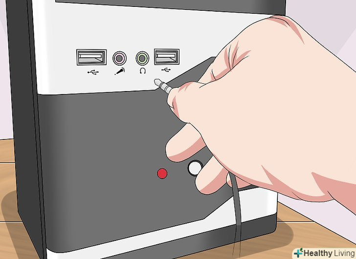 Перевірте підключення колонок.можливо, вони неправильно підключені до комп'ютера або один до одного. Щоб перевірити підключення колонок один до одного, обстежте кабелі, підключені до задніх панелей колонок. Щоб перевірити підключення колонок до комп'ютера, обстежте кабелі, підключені до задньої панелі комп'ютера.- Колонки повинні бути підключені до порту «Audio Out» (Аудіо вихід) комп'ютера, який, як правило, є роз'ємом для навушників і пофарбований в зелений колір.