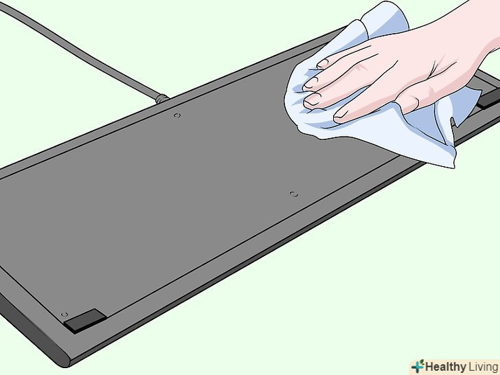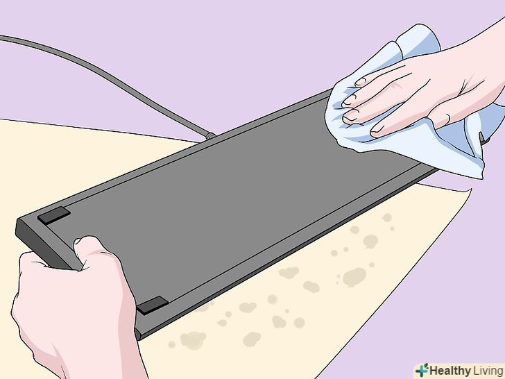 Поліруйте клавіатуру безворсовою тканиною.протріть клавіатуру останній раз, щоб видалити залишився пил і вологу. Огляньте клавіатуру: якщо на ній залишився бруд, подумайте про те, щоб почистити її більш ретельно. Після чищення клавіатури підключіть її до комп'ютера і перевірте, як вона працює.[7]- Спирт, що залишився на клавішах, повинен висохнути протягом хвилини. Вода висихає довше. Якщо ви використовували для чищення клавіатури воду або підозрюєте, що на неї потрапила волога, почекайте 24 години, щоб вона повністю висохла, перш ніж підключати до комп'ютера.