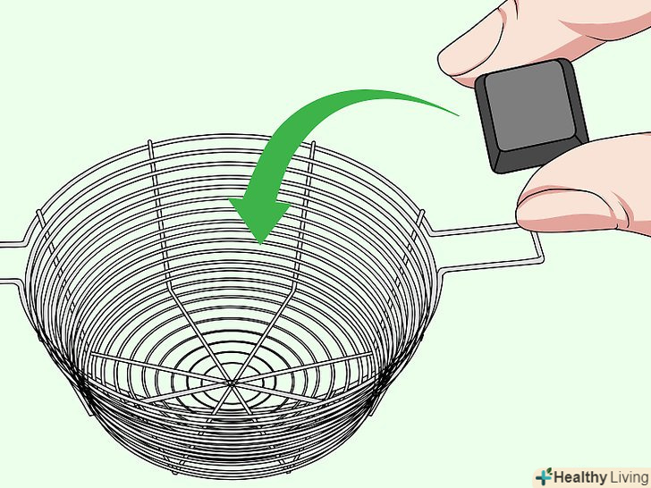 Складіть клавіші в друшляк і помийте їх теплою водою. Постеліть біля раковини рушник. Пустіть з крана теплу воду і складіть в друшляк. Підставте друшляк під проточну теплу воду і перемішайте клавіші рукою, щоб як слід сполоснути їх. Вода змиє залишки сміття і стече в отвори в дні друшляка. Після цього висипте клавіші на рушник, щоб вони висохли.[16]- Якщо вода не змила весь бруд, спробуйте використовувати рідкий засіб для миття посуду. Наповніть миску теплою водою і додайте одну столову ложку (15 мілілітрів) рідкого мила, щоб вийшов пінний розчин. Замість рідкого мила можна використовувати таблетки для очищення зубних протезів.