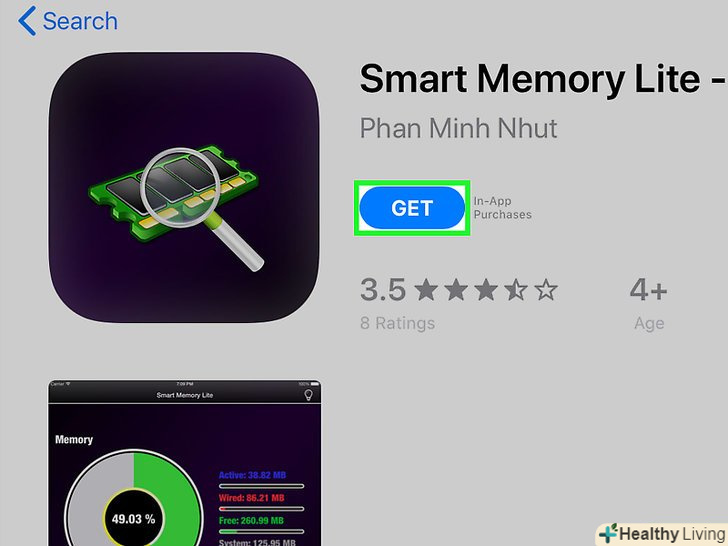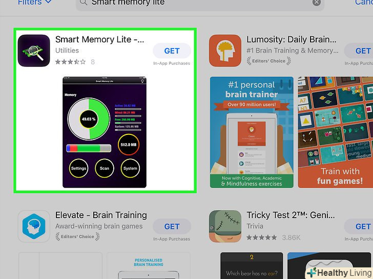 Торкніться "Smart Memory Lite".ви знайдете це додаток у верхній частині результатів пошуку.
