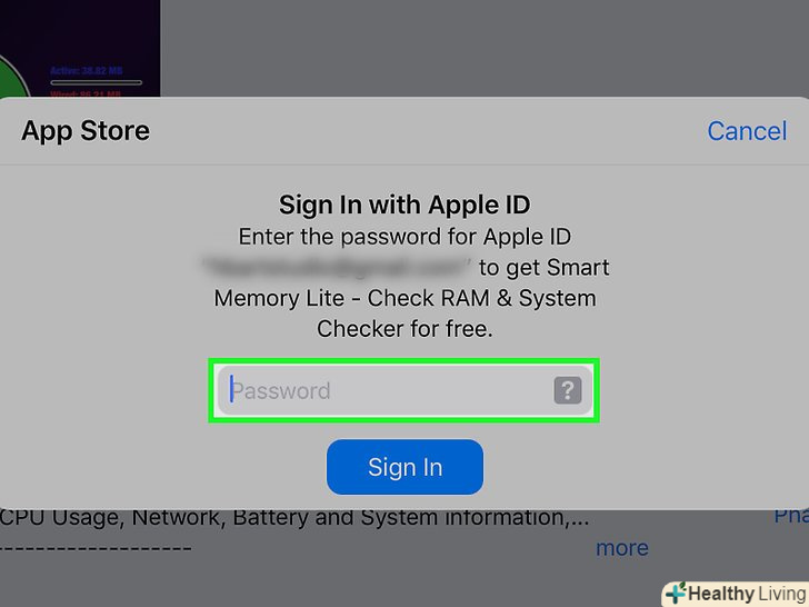 Натисніть на датчик Touch ID, коли буде запропоновано.так ви дозволите додатку встановитися на iPad.- Якщо на пристрої датчика Touch ID немає, торкніться "встановити" внизу екрана і введіть пароль Apple ID.