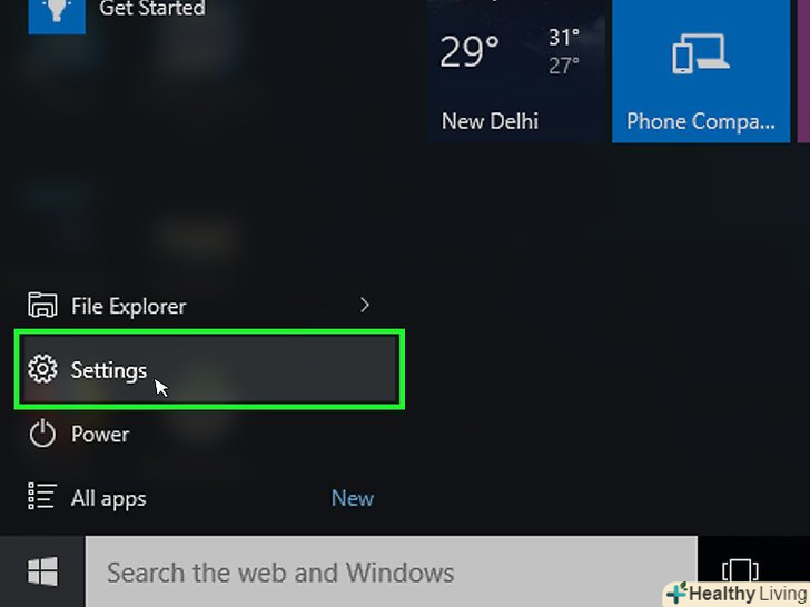Натисніть «Параметри».ви знайдете цей значок у нижньому лівому куті меню "Пуск".