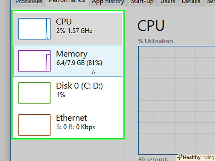 З'ясуйте, як використовується оперативна пам'ять .для цього відкрийте Диспетчер завдань і дізнайтеся, які процеси використовують той чи інший обсяг ОЗУ.- Якщо відкрити Диспетчер завдань, коли запущена конкретна програма, можна з'ясувати, який обсяг ОЗП необхідний для стабільної роботи програми.